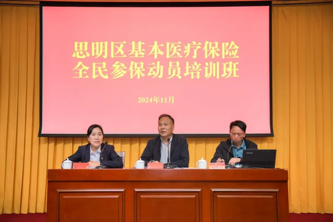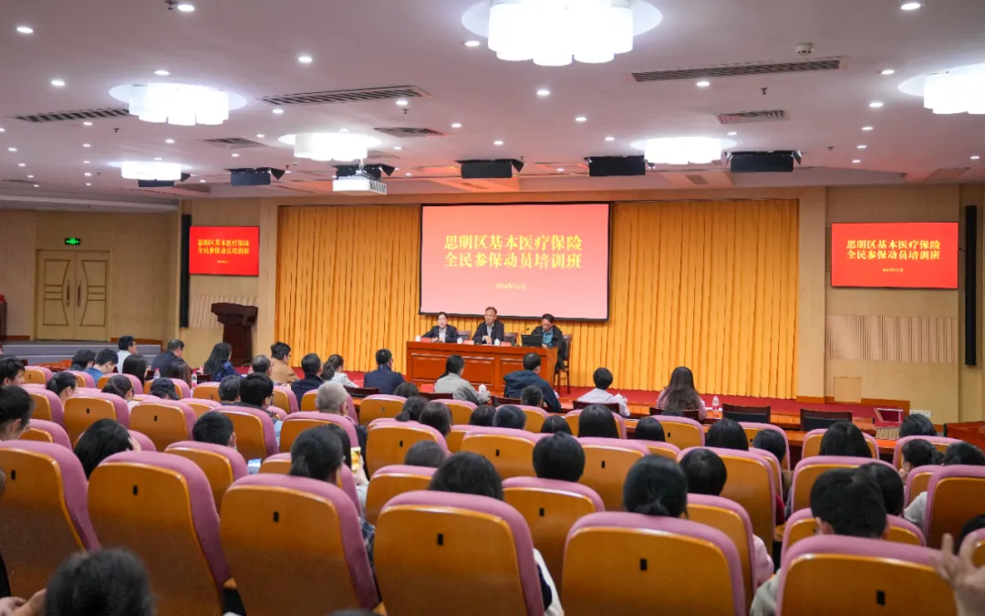 为维护群众参保权益,解决好群众看病就医的后顾之忧,确保“病有所医,医有所保”,厦门市各区政府、市医保局、市税务局联合组织2025年度医保参保动员系列培训活动。今天下午,思明区率先启动首场培训,思明区分管副区长曾繁振出席并做强调讲话,市医保中心及区卫健局、区税务局等部门相关代表,各街道、社区分管领导及业务骨干近200人参会。
